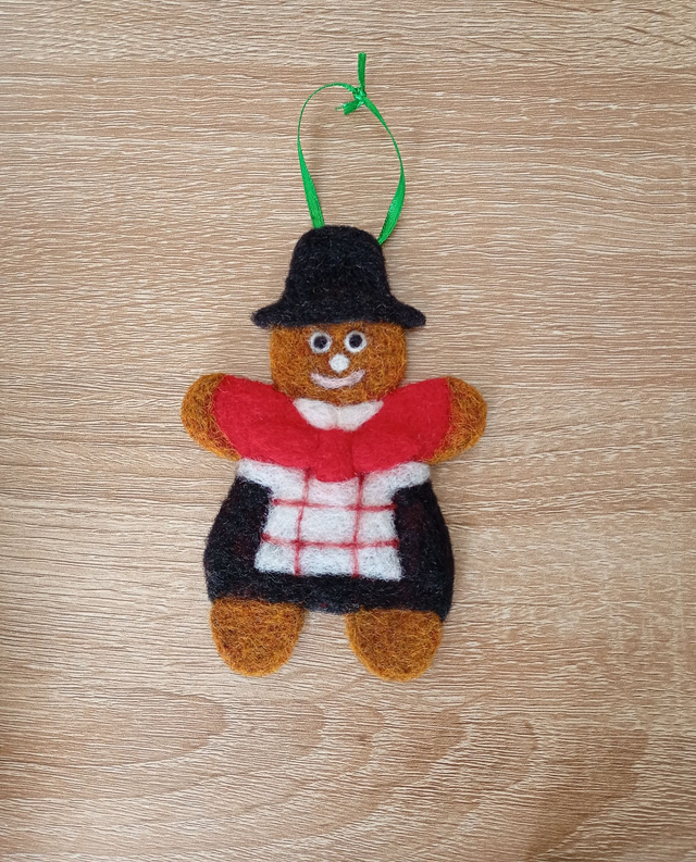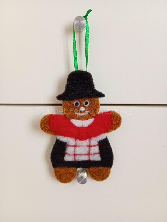 Cute handmade needle felted Welsh Lady themed gingerbread decoration. The perfect Welsh themed gift. Also a great gift idea for a gingerbread lover.